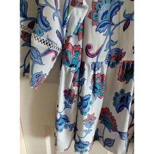 CATHERINES White Blue Floral Popover Blouse Cottagecore Peasant Boho- 3X (26/28)