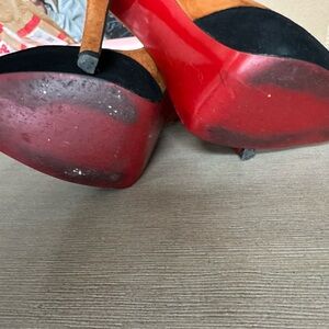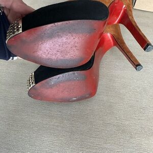 Christian Louboutin Black and Brown Heels with Gold Accents 39