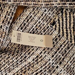 This jacket/ blazer is classic! Who doesn't love a tweed jacket!? It is open front and had two gold buttons at the pockets. Brand new, retails for 149$