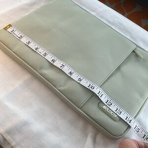 MOSISO laptop sleeve in light green with matte silver tone hardware. Features a front pocket and zipper closure. NWOT, comes from a smoke free home.