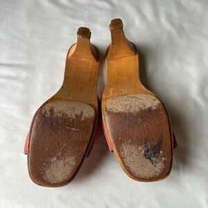 vintage 1970s Jacques Cohen sandals, mauve canvas peep toe heels, Spanish designer shoes, wood heel mules, bohemian summer heels, retro cottagecore footwear, pink heeled sandals, 70s boho fashion, made in Spain vintage shoes