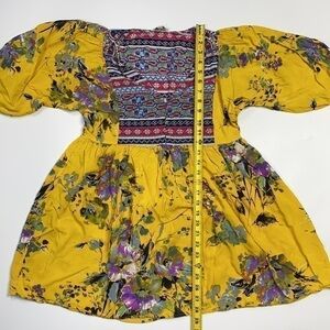 Umgee Button Vneck Yellow Floral Blouse
