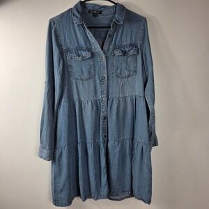 Velvet Heart Denim Tiered Button Front Dress Sz S Long Sleeve Pockets Blue