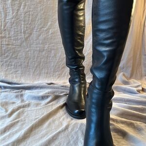 Chic as hell badass over-the-knee classic iconic wardrobe staple celebrity favorite NEW in BOX black Nappa leather 5050 low-heeled boots. Slammin.