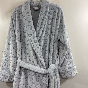 Soma Plush Blue Gray Embossed Cozy Leopard Print Robe with Belt