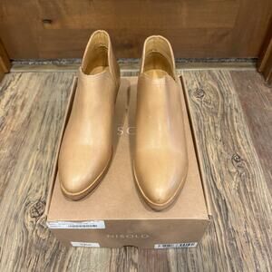 Nisolo Mia Leather Ankle Bootie with block heel 9 Almond