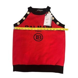 Balmain Paris Halter Top Sz M Button Accents & Logo Multicolor NWT MSRP $399