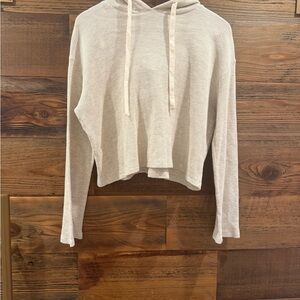 Soft cream hoodie by Monrow. Ideal for casual wear. Features a relaxed fit and drawstring hood. The textured waffle weave adds a layer of warmth. MRSP $146 size Large. NWT.