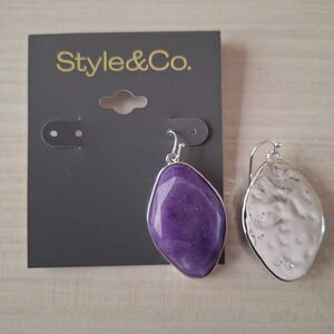 Style & Co. Silver-Tone Purple Stone Hook Earrings