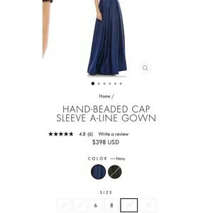 Mac Duggal Gown Dress 16 Embellished Beaded Cap Short Sleeve Navy A-Line Evening