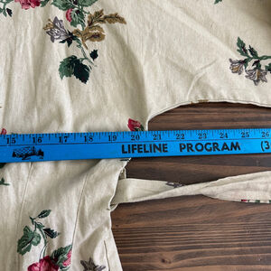 Handmade Women’s Floral Robe Linen Blend Tan/Red Size M Wrap Belted Kimono Style