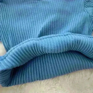 Zara Woman’s Blue Crop-Top Ribbed/Lined Shirt Thick Material - it is in perfectly good condition, I’ve worn it about two times however the Zara tag is falling off a little! Other than that it is in great condition!