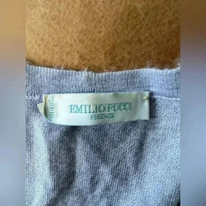 Elevate your wardrobe with this stunning Emilio Pucci cardigan. Crafted from high-quality cashmere, this light blue sweater boasts long sleeves and a solid pattern. Perfect for both casual and business occasions, this women's size 10 cardigan is a must-have for any fashion-forward individual. The sweater features a cardigan style and is perfect for the winter, fall, and spring seasons. Despite being flawed, this sweater is still a great addition to any wardrobe.