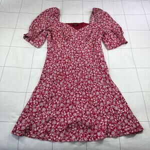 Madewell Red Floral Eloise Allover Print Puff Sleeve Mini Dress
