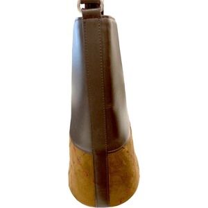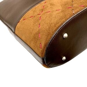 Burberry Shoulder Bag Brown Leather Suede Check Stitching