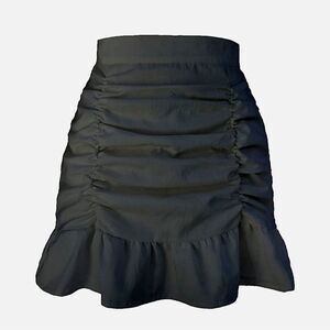NWT Women's Ruched Front Ruffle Trim High Waist Fishtail Mini Short Skirt
