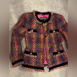 RARE Escada multicolored tweed gold button blazer