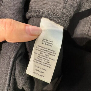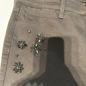 Crystal Jeweled - Embellished Never Fade Black Denim Material content: 86% cotton 12% polyester 2% spandex Black floral embellishment on front of pants Pants have some stretch