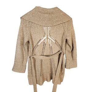 SUNDANCE Belted Tan Cardigan Tunic Sweater Womens Med Boho Hippie