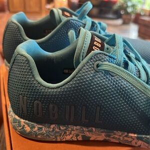 Stylish teal sneakers by NOBULL. Comfortable and durable design. Perfect for everyday wear. These are in like new condition only worn one time in home.