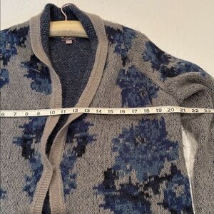 Elegant floral cardigan with a cozy fit. Features a blend of gray and blue tones. Ideal for layering.