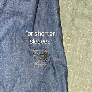 New without tags Rock Republic denim blouse in various shades of blue. Button-down style that can be converted to a three-quarter-sleeve blouse using the strap detail to hold the sleeves up. Features two front pockets. Size medium. Please see the photos for details. Thank you. #denim #blouse #rockrepublic #denimblouse