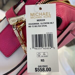 MICHAEL KORS Mercer Medium Top Zip Color-Block Belted Satchel Crossbody Purs NWT