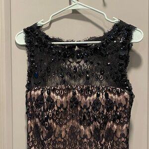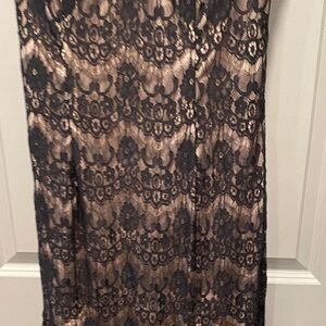 Betsy & Adam Black & Tan Lace Maxi Dress | Formal Evening Gown