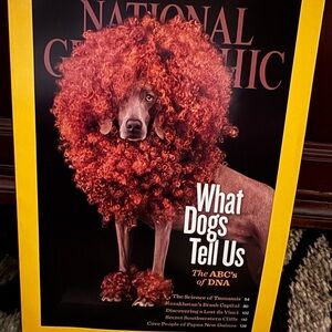 Collection of National Geographic magazines. Vibrant yellow borders. Various cover designs with blue and red accents.
