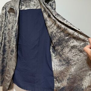 Peter Cohen Rocker Silver Velvety Foil Blazer Topper XL Layering Career Holiday