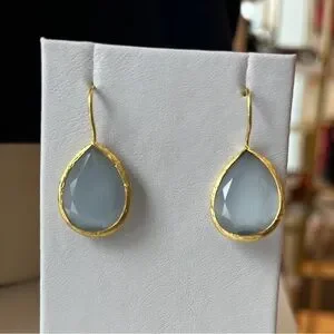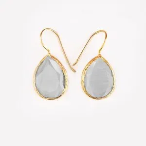 Debbie Katz Aydin (Cat Eye Stone grey blue ) 18k Gold Plated Teardrop Earrings