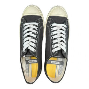 Step out in style with these vintage black Hood canvas sneakers. Perfect for casual outings, these shoes offer comfort and a sleek look. The black color adds versatility to your wardrobe. NWT