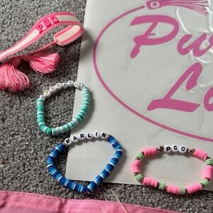 Brighten up your fishing gear with this Pink Fish Accessory Set. Featuring vibrant pink colors, this set is perfect for adding a playful touch. Features bracelets, sticker decals, release flags and candle. New and never used!
