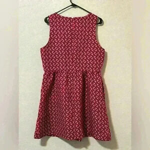 Kaari Blue Bright Pink & Black Geometric Jacquard Sleeveless Fit & Flare Dress