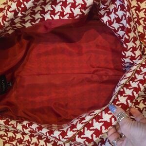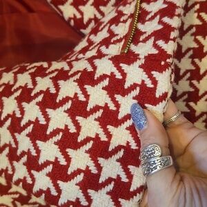 Talbot's Red/White Houndstooth Wool Blend Fully Lined Moto Jacket