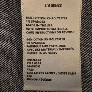 NEW L'Agence Yari Denim Collarless Jacket in Bishop Size XXS.