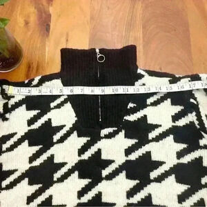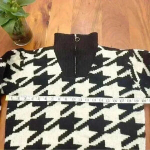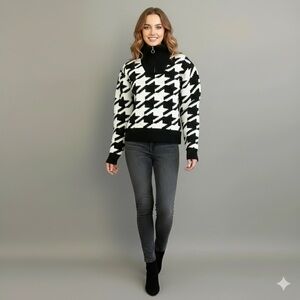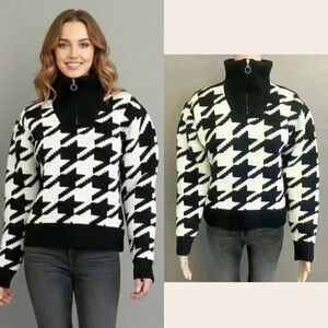 Houndstooth Turtle Neck Black & White Sweater/Jumper with Zip Up Collar.