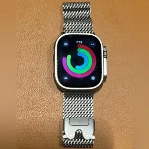 Apple iWatch 49mm NATURAL Titanium Milanese Loop size "L" in the Original box, MXKD3AM/A. Sealed, New. 100%Authentic Apple iWatch loop. Carbon neutral label. design by Apple, Inc. in USA. Brand New, Sealed.