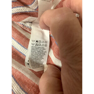 Lucky Brand Womens Button Front Linen Viscose Blend Top M Knot Back StripedIn excellent pre owned condition.