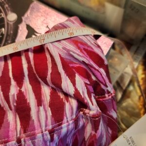 Pink skirt is 37 in long and 18.5 in wide, if stretched can go 23in.