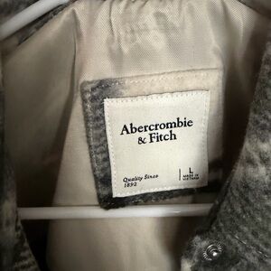 Classic plaid shirt with button-up design. Features green, gray and cream tones. Ideal for everyday style.