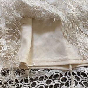 The Lulus Kenna White Crochet Lace Sleeveless Bodycon Dress makes any day special! Lovely, white crochet lace overlays a cream, knit lining as it shapes a rounded neckline and darted, sleeveless bodice. Sheer, fitted waist tops a bodycon skirt with an adorable sheer fringe hem. Hidden back zipper/clasp.