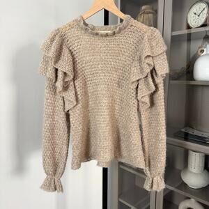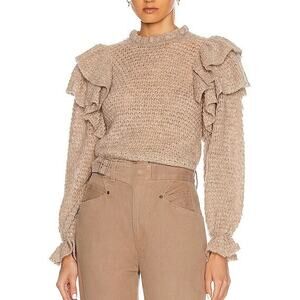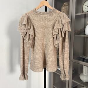 Ulla Johnson Camilla Frill Tan Baby Alpaca Ruffle Shoulder Sweater M Knit Top