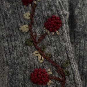 Women’s Grey Zara Fingerless Gloves with Flower Embroidery