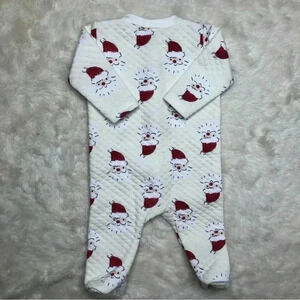 Chick Pea Footed Onesie Christmas Santa Pajamas Zippered White & Red 3-6 Months