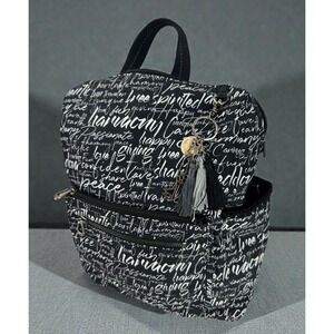 Sakroots Black Backpack White Script Print Convertible Travel Boho Bag Keychain