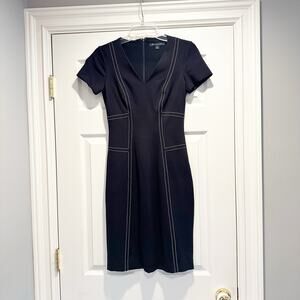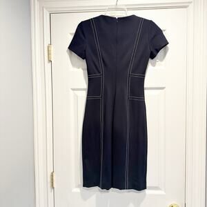 Brooks Brothers Red Fleece Retro Contrast Stitched Fitted Stretch Ponte Knit Sheath Dress Short Cap Sleeves
