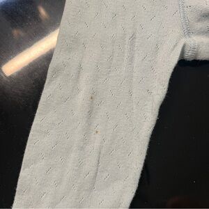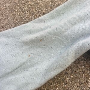 So cute 🥰 Has a few stains as shown, I have not tried to get them out myself but I’m sure with Shout it will come out. From the late 2000s. Baby blue with satin ribbon where the buttons are.