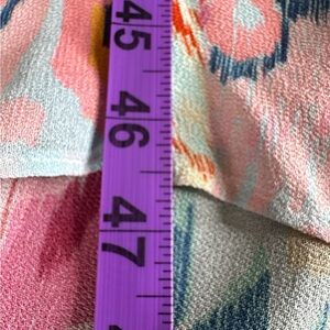Farm Rio Boboikat Maxi Dress, Empire Waist, Open Back, Invisible Rear Zip, Bell Sleeves, Deep V-Neck, Multicolored Consisting of Purple, Pink, Red, Yellow, Orange & Blues, Lined, No Pockets. PTP 15 1/2”, Waist 15”, Length to Shortest Point in Front 46 1/2”, Both Back & Sides Hang Longer. No Flaws. Vibrant maxi dress with a colorful abstract pattern. Features a flowing design and a deep V-neckline.