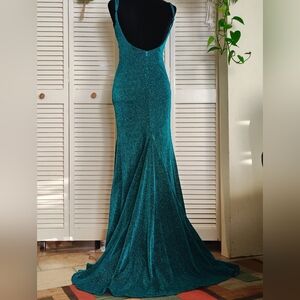 ✨ Stunning Teal Glitter Prom Dress with High Slit Size 4 – Like New ✨